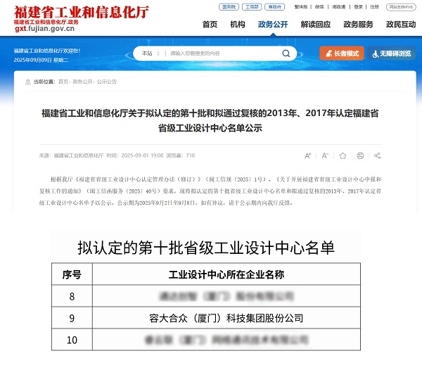 Recently, the Department of Industry and Information Technology of Fujian Province released ''the public notice on The List of Proposed 10th Batch of Provincial-Level Industrial Design Centers''. Rongta Technology was successfully included in the recognized list, marking that the company has stepped onto a new stage in terms of technological innovation capabilities, R&D system construction, and transformation of scientific and technological achievements.